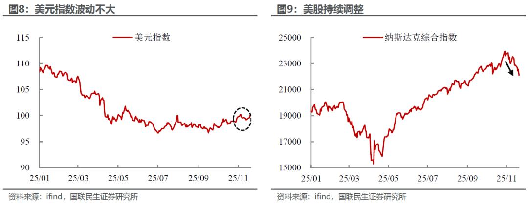 而对于风险资产而言,对AI资本开支以及联储降息空间的担忧持续扰动风险偏好,英伟达的财报更像被市场交易为利多出尽。随着业绩信息空窗期的开始,市场短时间内找不到新的材料来炒作,调整才是对高估值的尊重,当然过度的担心似乎也没有必要。