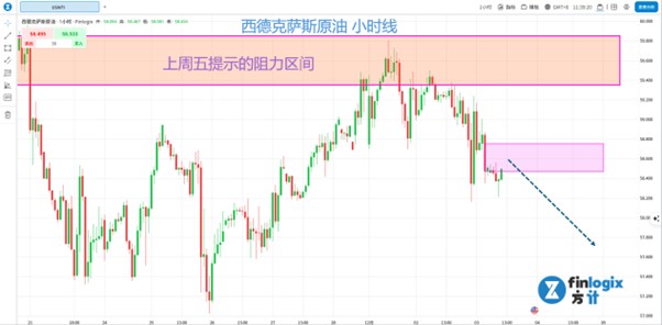 技术面:从日线图来看,来到上周五早报59.35~59.85说的阻力区间就转折向下,间接证实之前的观察,当前仍是偏空格局。从小时线来看,出现N字向下的看空结构,因此现价到58.7区间,有考虑做空的机会。